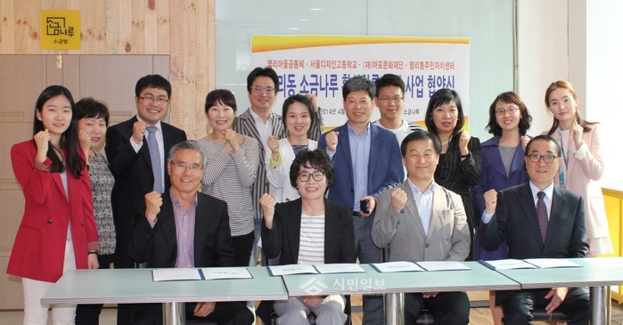 서울 마포구 염리마을공동체는 지난 24일 서울디자인고등학교, 마포문화재단과 함께 염리동 소금나루에서 마을공동체와 소금나루 운영활성화를 위한 업무협약을 체결했다. 이날 협약식에는 각 기관 대표 및 실무자들이 참석해 상호간 프로그램 개발 및 협의, 학생 자원봉사 및 재능기부 등 마을공동체 활성화 사업을 추진하기로 했다. (사진제공=마포구청)