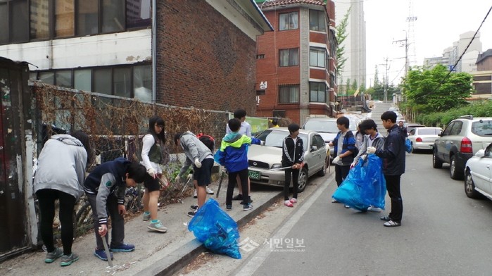 지난 26일 경기 고양시 덕양구 행신1동 주민자치위원회는 깨끗한 마을환경을 만들기 위해 지역내 학생, 주민 등 50여명이 참여한 가운데 2시간 동안 도로변과 마을 곳곳에 방치된 쓰레기를 제거하는 마을청결 학생봉사활동을 실시했다. 사진은 이날 청소활동에 참여한 학생들이 쓰레기를 수거하는 모습. (사진제공=덕양구청)