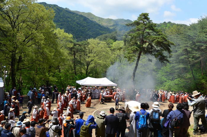 1일 오전 경남 합천 해인사 연화대에서 지난 27일 불의의 교통사고로 숨진 '팔만대장경 지킴이' 성안스님의 영결식(다비식)이 거행되고 있다.