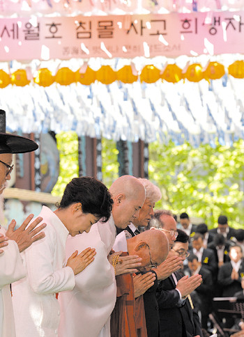 박근혜 대통령이 6일 서울 종로구 견지동 조계사에서 열린 불기2558년 부처님오신날 봉축 법요식에 참석, 봉축사를 들으며 합장하고 있다.