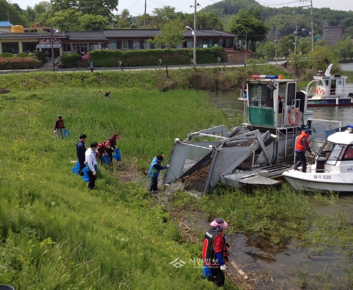 7일 경기 광주시는 팔당수질개선본부와 광주시가 주관하고 남종전담의용소방대가 후원하는 '5월 중 범시민 일제대청소'의 일환인 '팔당호 수중 및 수변구역 하천 정화활동'을 주민·공무원 1000여명과 함께 실시해 수면위 부유쓰레기를 수거했다. 사진은 이날 참여자들이 환경정화활동을 펼치는 모습. (사진제공=광주시청)