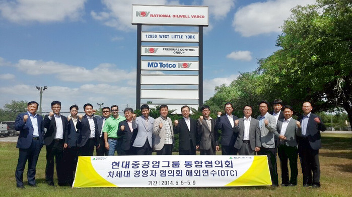 | ▲ 미국 휴스턴에서 열린 ‘해양기술박람회(OTC)’를 참관 후, National Oilwell Varco(NOV)를 방문한 현대중공업 협력회사 대표들의 모습. | ||