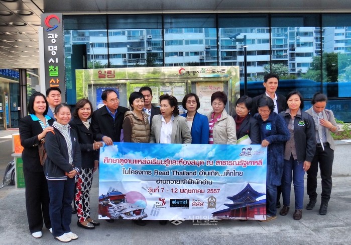 지난 10일 광명시 철산도서관에 태국 방콕에 있는 ‘TK Park(Thailand Knowledge Park) 방문단’ 20명이 철산도서관의 자동화시스템의 환경구축 벤치마킹을 위해 방문해 각종 시설에 감탄했다. 사진은 철산도서관 벤치마킹을 마치고 기념 촬영을 하고 있는 모습. (사진제공=철산도서관)