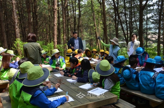 경기 연천 상리초등학교는 13일 전교생을 대상으로 '봄철 숲속 생태관찰교실'을 실시했다. 이번 봄철 숲속 생태관찰교실은 2014학년도 상리초 교육중점사업 '수(水)림(林)성(星) 교육' 연중 활동의 일환으로 어느 지역보다 청정지역이며 자연이 보존된 연천 상리초 주변 숲에서 실시됐다. 사진은 학생들이 숲속체험 교실에서 설명을 듣고 있는 모습. (사진제공=상리초등학교)