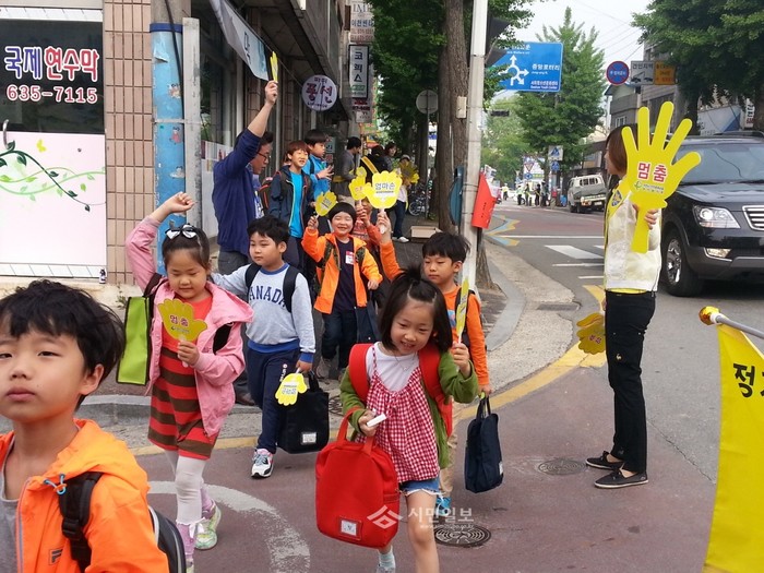 경기 이천시는 지난 14일 이천남초등학교 인근 횡단보도에서 7곳에서 이천경찰서와 이천교육지원청, 이천남초등학교, 이천시안전문화운동추진협의회, 녹색어머니회, 마미캅봉사대, 모범운전자회 등이 참여한 가운데 학교주변 어린이 보행안전을 위한 횡단보도 올바르게 건너기 '엄마손' 캠페인을 실시했다. (사진제공=이천시청)
