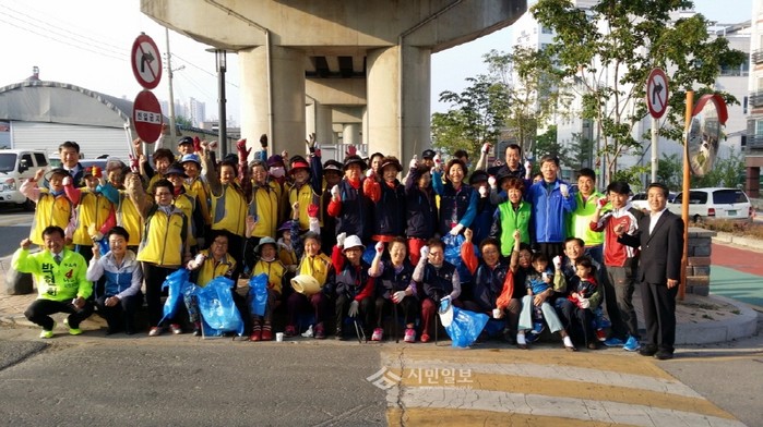 경기 동두천시 중앙동 주민센터는 21일 사회단체원, 이담지킴이 참여 노인, 지역주민 등 70여명과 함께 지역내 환경정화활동인 '클린데이 환경정화활동'을 진행하며 쓰레기 수거와 함께 잡초 제거 작업을 병행 실시했다. 사진은 정화활동 참가자들의 기념촬영 모습. (사진제공=동두천시청)