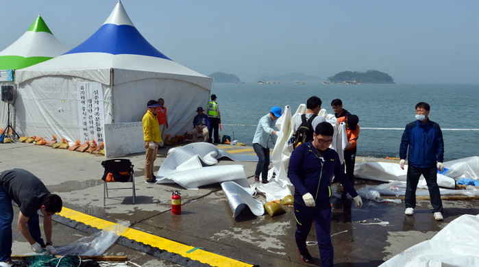 세월호 침몰사고 41일째인 26일 오전 전남 진도군 임회면 팽목항 선착장에 설치돼 있던 가족 휴게실 천막이 철거됐다. 천막이 조립식 주택 인근으로 이동됨에 따라 오는 30~31일 조도 주민의 배편 운항이 재개될 것으로 보인다.
