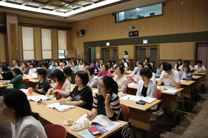 경기도가 27일 수원 선경도서관에서 남부권역 작은도서관 운영자를 대상으로 '2014년 2차 작은도서관 독서문화 프로그램 직무교육 기본과정'을 진행했다. 이번 과정에는 수원, 용인, 부천, 안산 등 14개 시·군의 작은도서관 운영자 110여명이 참가했으며, '책·도서관·사람'을 주제로 작은도서관의 운영, 장서개발 및 자체적인 독서문화 프로그램 기획 등 교육 프로그램과 소방 안전교육을 실시했다. (사진제공=경기도청)
