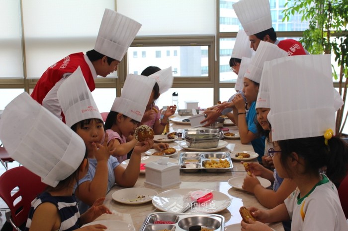 서울 중구 중림종합사회복지관은 최근 신세계 SVN과 함께 지역내 아동을 초청해 함께 쿠키를 만들고 꾸며보는 상상쿠키 클래스 특강 '쿠키쿡쿡(Cookie Cook Cook)'을 실시했다. 사진은 직접 만든 쿠키와 빵을 맛보는 아이들의 모습. (사진제공=중구청)
