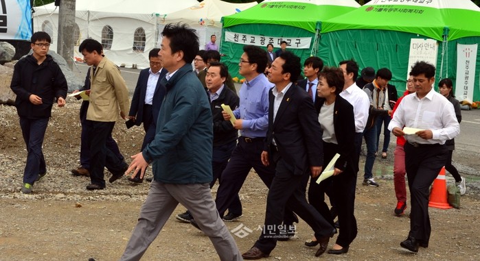 세월호 침몰사고 진상 규명을 위한 국정조사특별위원회 일부 위원들이 참사 48일째인 2일 오후 실종자 가족이 머물고 있는 전남 진도군 임회면 팽목항을 방문하고 있다.