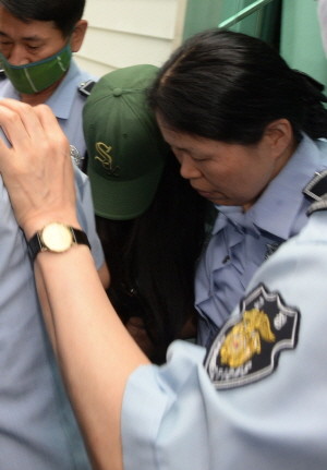 경북 칠곡 계모사건 추가재판 2차 공판이 9일 오전 대구지법 별관 4호 법정에서 비공개로 진행됐다. 계모 임 모씨(36)가 2차 추가 공판을 마치고 경찰 호송차에 타고 있다.