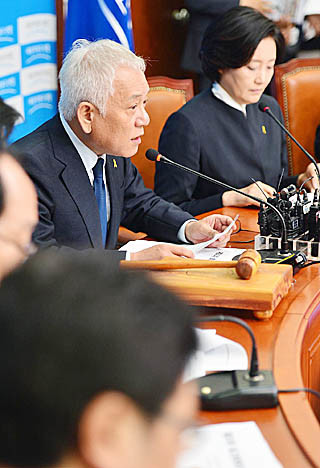 김한길 새정치민주연합 공동대표가 9일 오전 서울 영등포구 여의도동 국회에서 열린 최고위원회의에서 모두발언 하고 있다.