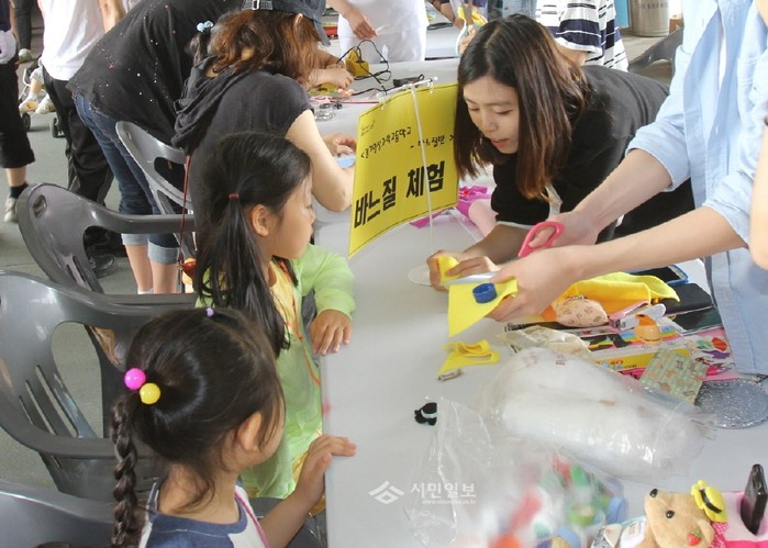 경기 고양시 일산서구는 지난 8일 대화동에 위치한 고양종합운동장에서 중고 재활용품 나눔 및 교환의 장인 '2014년 제1회 푸른고양 나눔장터'를 시민 4만여명이 참여한 가운데 성료했다. 사진은 이날 행사에 참가한 학생들이 운영하는 동아리 체험부스의 모습. (사진제공=고양시청)