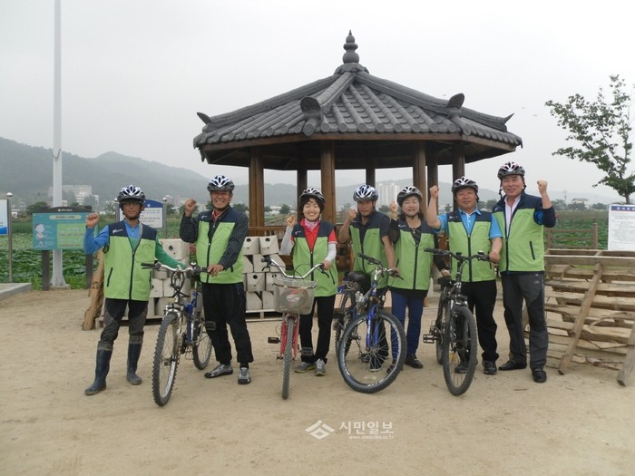 경북 구미시 지산동은 지난 9일 '두발로 데이'를 맞아 지산동 그린바이크 사랑봉사대 대원 15여명이 참여한 가운데 자전거 이용 문화 확산과 녹색생활 실천을 위한 6월 정기 라이딩을 실시했다. 이날 참가자들은 지산 샛강을 시작으로 낙동강 체육공원내 자전거 도로 12km 코스를 주행했다. (사진제공=구미시청)