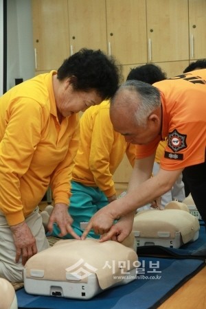 서울 구로소방서는 12일 오전 금천구 소재 구립 시흥노인교실에서 관계자 및 노인들을 대상으로 심폐소생술 등 응급처치 실습교육을 실시했다. 이번 실습교육은 최근 심정지·뇌졸중 등의 발생 빈도가 증가하고 있음에 따라 ▲하임리히법에 대한 이론교육 및 실습 ▲심폐소생술에 대한 이론교육 ▲마네킹을 활용한 심폐소생술 실습 ▲영·유아 대상 심폐소생술과 하임리히법 실습 등을 실시했다. (사진제공=구로소방서)