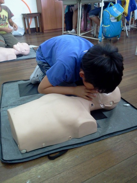 인천공단소방서 119구급대는 최근 인천 연수구 선학동에 위치한 선학초등학교 전교생 720여명을 대상으로 초등학생들의 눈높이에 맞는 심폐소생술 교육을 실시했다. 심폐소생술의 방법 및 뇌에 산소가 공급되는 원리를 알기 쉽고 재미있게 설명했으며 일상생활에서 반드시 알아야 할 응급처치 방법, 자동제세동기 사용법, 흉부압박법등 심폐소생술 교육을 했다. 사진은 심폐소생술 실습을 하고 있는 학생의 모습. (사진제공=인천공단소방서)