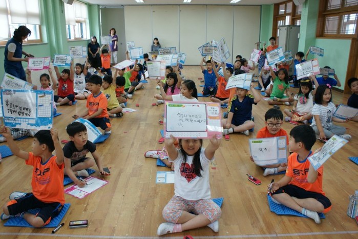 경기 가평군 하면 현리에 위치한 조종초등학교는 지난 13일 인형극과 독후감 대회, 고인쇄 체험, 독서 골든벨 행사를 비롯해 고정욱 작가를 초빙해 강의를 여는 등 다양한 프로그램으로 꾸민 '조종 책 잔치'를 진행했다. 사진은 독서 골든벨에 참가한 학생들의 모습. (사진제공=조종초등학교)