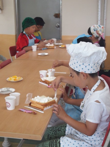 최근 경기 부천시 오정초등학교가 학교 급식실에서 33명의 저학년 학생을 대상으로 식빵 및 다양한 과일 토핑을 이용해 케이크를 만드는 '신나는 요리 실습'을 진행했다. 사진은 이날 요리실습에 참여한 학생들이 식빵으로 케이크를 만들어보고 있는 모습. (사진제공=부천교육지원청)