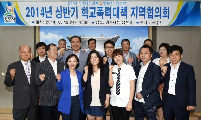 경기 광주시는 지난 19일 시, 경찰서, 교육지원청 관계 공무원 및 시의원, 시민단체 대표자 등 15명의 학교폭력 예방관련 위원들이 참가한 가운데 '2014년도 상반기 광주시 학교폭력대책 지역협의회'를 시청 상황실에서 개최했다. 사진은 이날 협의회에 참석한 회원들의 모습. (사진제공=광주시청)