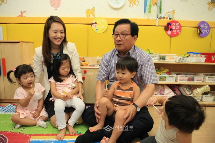 | ▲ 고재득 성동구청장은 재임기간동안 국공립어린이집에 대한 높은 수요를 해소하기 위해 어린이집 확충도 꾸준히 추진해왔다. 지난 2012년 8월 구립행당푸르지오 어린이집을 방문한 고재득 구청장의 모습.(사진제공=성동구청) | ||