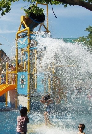 최근 인천 연수구가 여름철을 맞아 연수동 문화공원과 동춘동 부수지공원에 13세 이하의 어린이들이 이용할 수 있는 물놀이장을 개장했다. 사진은 8일 연수동 문화공원 물놀이장을 찾은 어린이들이 이를 이용하고 있는 모습.(사진제공=연수구청)