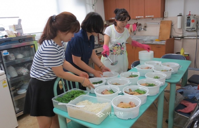 서울 성북구 '보문골 돌봄 봉사단'이 지난 7일 무더위에 지친 돌봄 홀몸노인 22명의 가정을 방문해 봉사단원들이 손수 만든 여름철 보양식 삼계탕을 전달, 뜨거운 사랑을 실천했다. 사진은 삼계탕을 직접 만들고 있는 봉사단원들의 모습. (사진제공=성북구청)