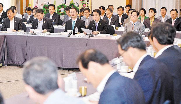 남경필 경기도지사가 9일 오전 서울 여의도 국회 귀빈식당에서 열린 ‘경기도 국회의원 초청 첫 정책협의회’에서 인사말을 하고 있다.