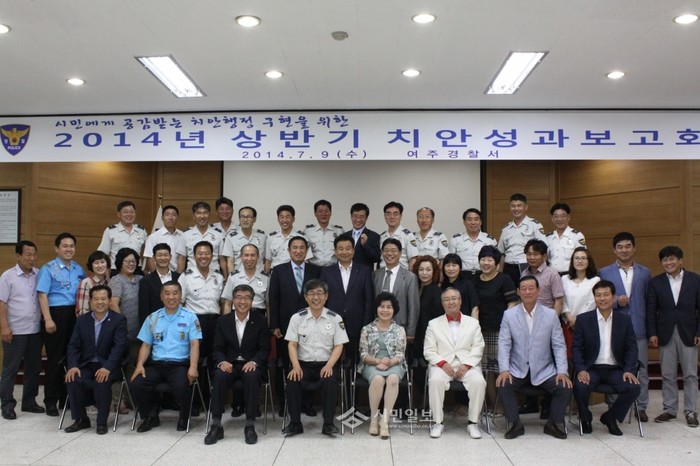 경기 여주경찰서는 지난 9일 정성채 여주경찰서장, 원경희 여주시장, 김명란 여주교육지원청 교육장을 비롯해 협력단체 관계자와 경찰관 60여명이 참석한 가운데 상반기 치안 성과와 하반기 중점 추진계획을 보고하고 범죄예방 대책에 대한 방안을 모색했다. (사진제공=여주경찰서)