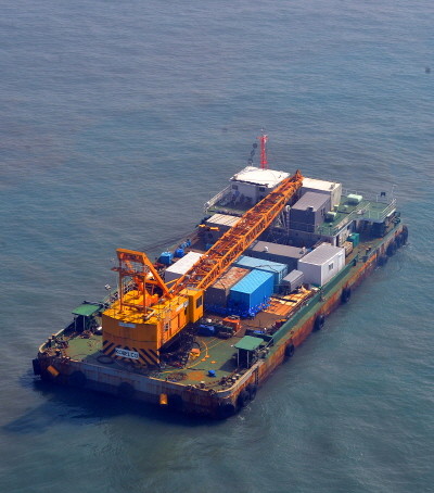 세월호 침몰사고 87일째인 11일 오후 전남 진도군 관매도 인근 사고해역. 피항했던 바지선이 복귀해 수색을 재개하고 있다.
