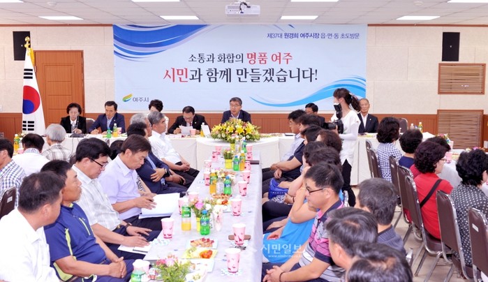 지난 15일 경기 여주시는 원경희 여주시장과 이환설 여주시 의회의장을 비롯해 지역내 기관·단체장 등 100여명이 참석한 가운데 민선6기 출범 후 첫 '시민과의 대화'를 여흥동에서 개최했다. 이날 행사에서 원 시장은 공직자와 시민들이 서로 상생의 관계를 형성해 나가길 희망한다고 말했다. (사진제공=여주시청)