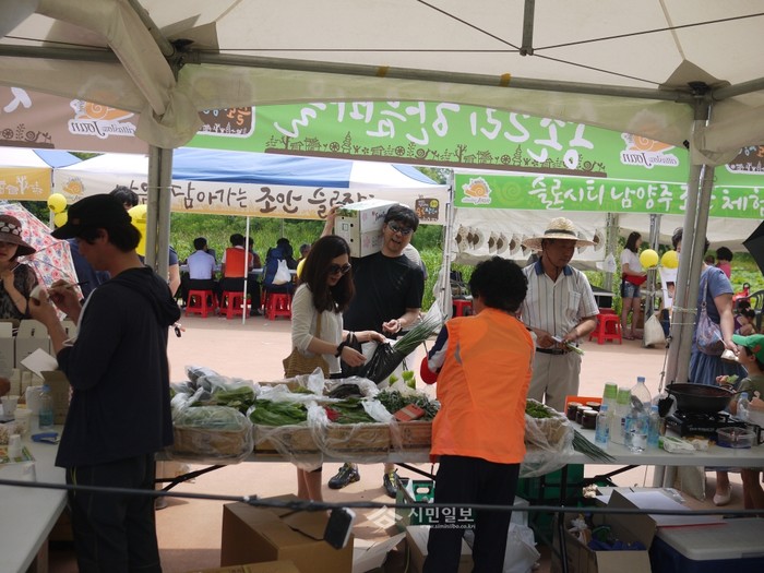 | ▲ 지난 6월14일 처음으로 열린 '제1회 조안 슬로장터'에서 이용객들이 지역에서 난 싱싱한 야채들을 둘러보고 있는 모습. (사진제공=남양주시청) | ||