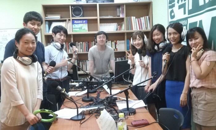 서울 동작구는 구 직원들이 직접 작사·작곡하고 노래까지 부른 대중교통 캠페인송 '푸르고 안전한 동작, 우리 대중교통' 녹음작업을 최근 마치고 구 페이스북을 통해 공개했다. 사진은 지역라디오 방송 '동작FM'의 도움으로 녹음을 진행 중인 구 직원들의 모습. (사진제공=동작구청)