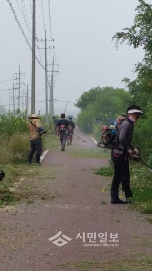 지난 21일 경기 이천시 호법면 새마을지도자 회원들은 호법 후안리~율현동에 이르는 3.5km 도로를 대상으로 도로변 잡목 제거와 쓰레기 수거 등 환경정비 활동을 실시했다. 사진은 잡목제거 활동 중인 호법면 새마을지도자 회원들의 모습. (사진제공=이천시청)