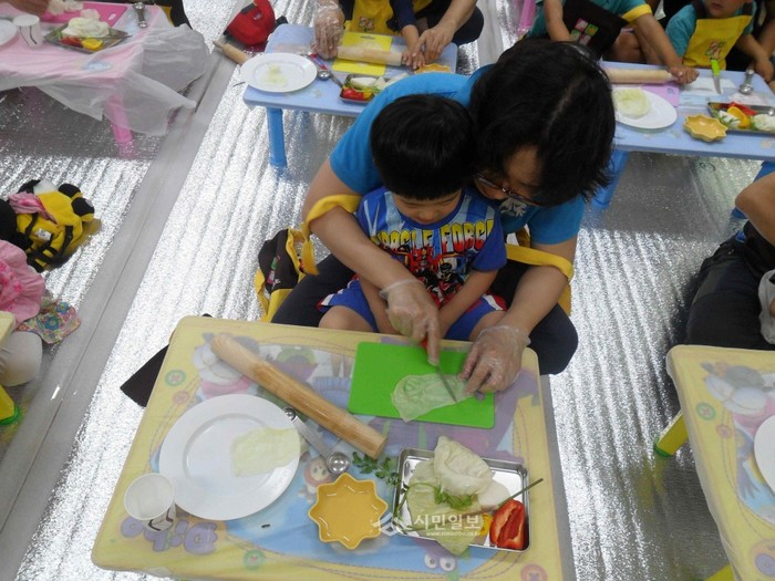 구는 PPT와 유인물 자료를 통해 이런 교육을 실시하고 부모와 함께 아이들이 조리실습에 참여토록 해 저염식에 대해 흥미를 느낄 수 있도록 했으며 이밖에도 조리도구 활용법과 위생교육을 병행하는 등 유익하고 알찬 내용으로 교육을 진행했다.