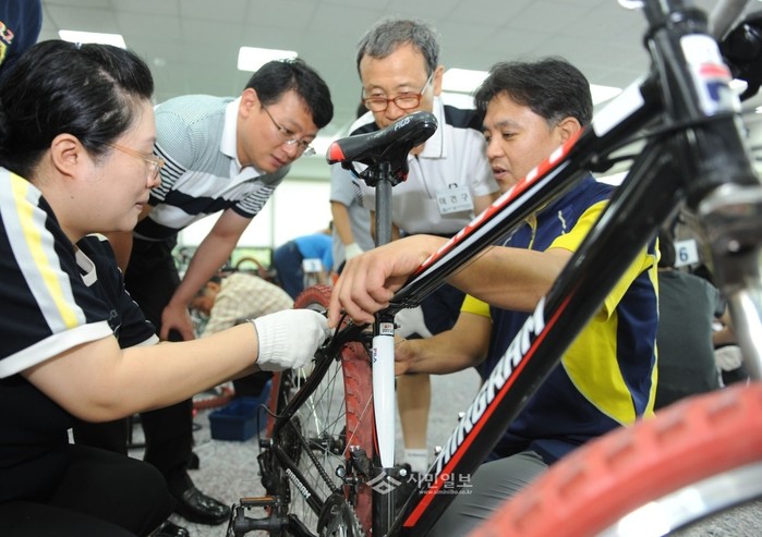 지난 22일 서울 송파구는 성내천로 어린이안전교육관에서 주민들을 대상으로 자전거 정비교실을 열었다. 이날 교육에서는 자전거 체인과 페달 분리 및 장착, 타이어 장착과 펑크 수리 등을 직접 해보는 실습을 실시했다. 자전거 정비교실은 25일까지 1차 교육이 실시되고 오는 8월25~29일 2차 교육이 진행된다. (사진제공=송파구청)