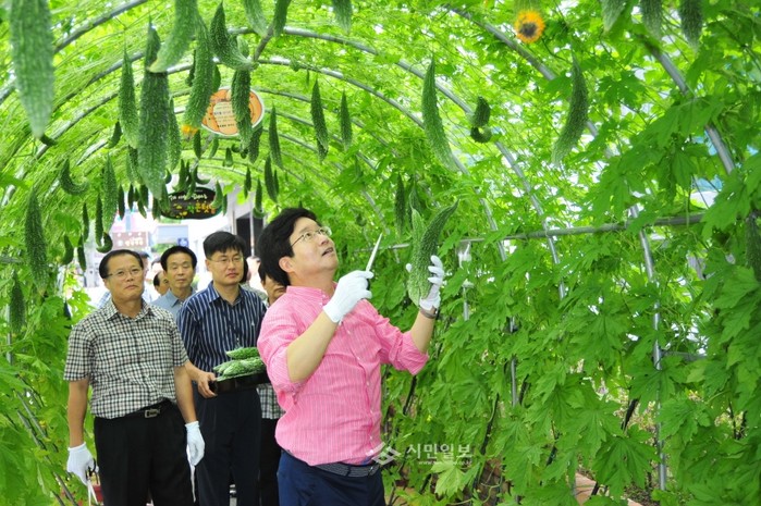 구청내 텃밭서 여주 수확