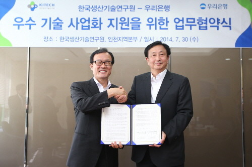 [시민일보=고수현 기자]우리은행(은행장 이순우, www.wooribank.com)은 한국생산기술연구원(이하 생기원)과 인천테크노파크내 생산기술연구원 인천지역본부에서 우수기술 사업화 지원을 위한 업무협약을 체결했다고 31일 밝혔다.