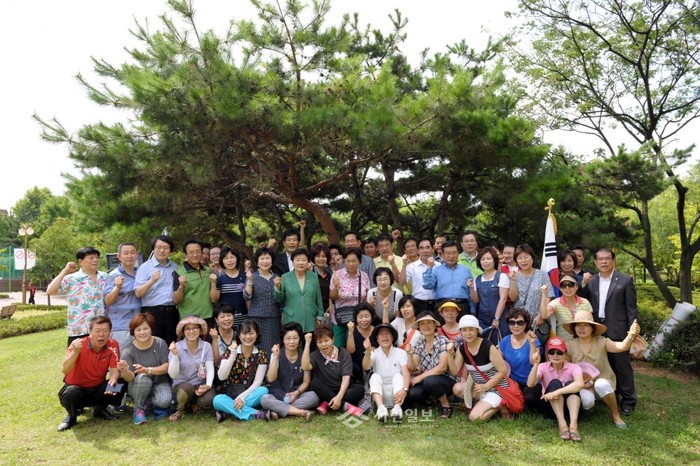 [시민일보=박기성 기자]박정자 영등포구의회 의장(가운데줄 녹색옷)이 1일 영등포공원에서 열린 '작은도서관 피서지문고' 개장식에 참여했다. 이 문고는 피서를 멀리 떠나지 않고 지역내에서 보내는 주민들을 위한 것으로 2000여권의 책을 이동도서관에 비치해둔 것이다. 박 의장은 인사말에서 “피서지 문고를 찾는 모든 구민들이 무더위도 식히고 자유롭게 책을 읽어 몸과 마음이 풍요로워 지는 일석이조의 여유를 즐기시기 바란다”고 말했다.(사진제공=영등포구의회)