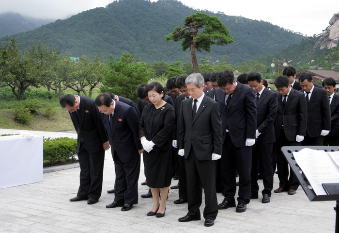 현정은 현대그룹 회장과 조건식 사장 및 현대아산 임직원 20여명은 4일 금강산 현지에서 원동연 아태 부위원장 등 북측 관계자 20여명과 함께 故 정몽헌 회장 11주기 추모식을 가졌다. (사진제공=현대그룹)