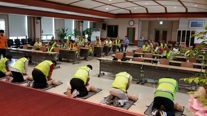 이번 교육은 아산소방서(소방사 고재호)의 협조를 받아 △ 근무 중 발생할 수 있는 사고에 대한 응급처치법 △ 여름철 폭염 등으로 발생할 수 있는 질병 예방법을 교육하였다.