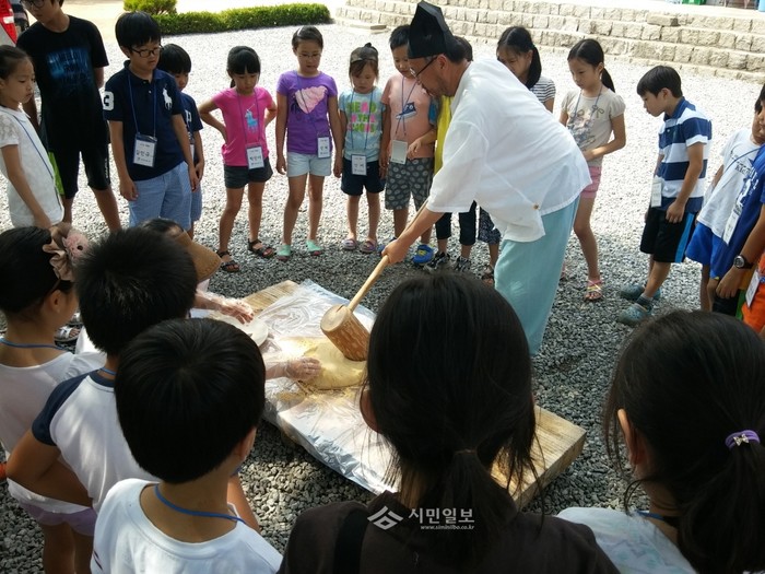 서울 강동구립강일도서관은 최근 여름방학을 맞이해 초등학생 1~6학년 31명이 참가한 가운데 이천도립서당을 방문, 전통배례법, 식사예절, 전통놀이체험, 전통음식 만들기 등을 배우는 '서당체험 및 인성예절 일일캠프'를 진행했다. (사진제공=강동구도시관리공단)