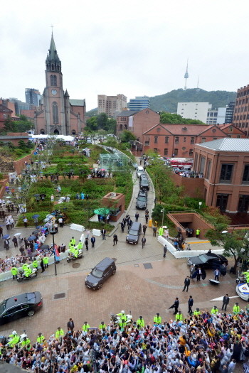 명동성당 나서는 교황