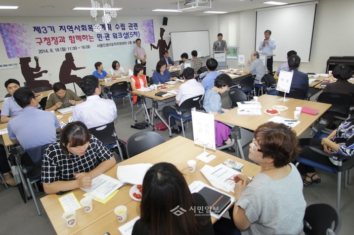 지난 18일 서울 은평구 인생이모작지원센터에서 열린 '3기 지역사회복지계획수립 관련 보고회'에서 김우영 은평구청장이 지역사회복지계획 태스크포스(TF) 등 관계자 70여명이 참석한 가운데 보고회를 진행하고 있다. (사진제공=은평구청)