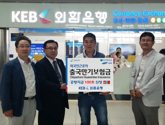 이번 외국인근로자 출국만기보험금 공항지급 100호의 주인공은 몽골 출신 근로자 에르테네바타르(30)로 "공항 외환은행 환전소에서 현금을 직접 수령하여 편리할 뿐 아니라 귀국 후 출국만기보험금 미수령에 대한 불안감이 해소되어 안심이 된다"며 "현금으로 받은 보험금으로 공항 면세점 등에서 부모님, 친적, 지인들을 위한 작은 선물도 살 수 있어 기쁘다"고 밝혔다.