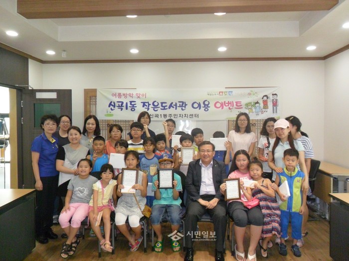 경기 의정부 신곡1동 주민자치위원회에서는 최근 여름방학을 맞아 지역내 작은 도서관 이용 초·중·고등학생을 대상으로 '多출석 이벤트' 행사를 개최했다. 사진은 독서 이벤트 행사에 참가한 학생들의 시상식 후 기념촬영 모습. (사진제공=의정부시청)