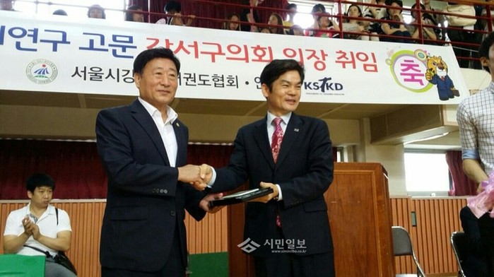 이 의장은 이날 오전 10시 올림픽체육센터에서 개최된 '제123회 강서구 승품단 심사대회'에 참석해 공로패를 수상했다.