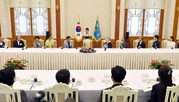 박근혜 대통령이 29일 청와대에서 열린 나눔실천자 초청 오찬에 참석, 인사말을 하고 있다.