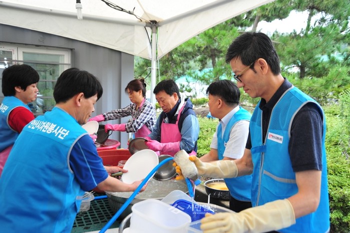 제종길 경기 안산시장은 지난 8월29일부터 이달 1일까지 4일 동안 여름휴가를 반납하고 부인 임미정 여사와 함께 진도로 내려가 봉사활동을 하며 지역민들에게 감사함을 표시했다. (사진제공=안산시청)