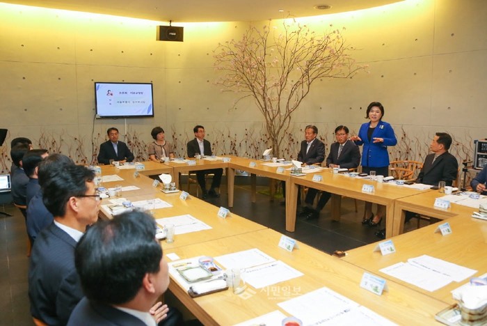 지난 1일 조은희 서초구청장이 구청에서 열린 서초경찰서장, 반포 세무서장 등 지역내 주요 기관장들과의 협의회에 참석해 서초의 발전을 위해 항상 노력하는 구청장이 되겠다며 함께 발맞춰 줄 것을 당부했다. (사진제공=서초구청)