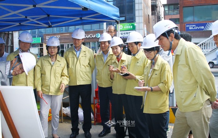 최근 송파구의회 도시건설위원회 소속 의원들이 석촌지하차도 동공 발생 현장을 방문해 동공 발생의 직접적인 원인인 9호선 실드터널공사 현장을 확인하고 관계자로부터 시공구간 등 사업추진에 대한 설명을 들은 후 주민불편 및 불안감 해소를 위해 조속한 복구와 향후 안전대책 마련을 당부했다.(자료제공=송파구의회)